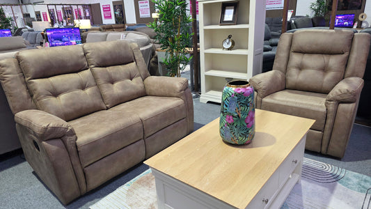 Valencia Recliner Sofas - Light Brown Fabric