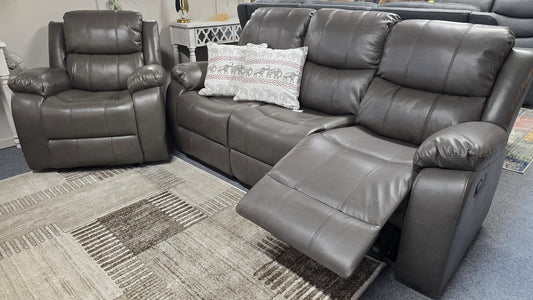 Kilkeen Recliner Sofas Grey Brown Air Leather
