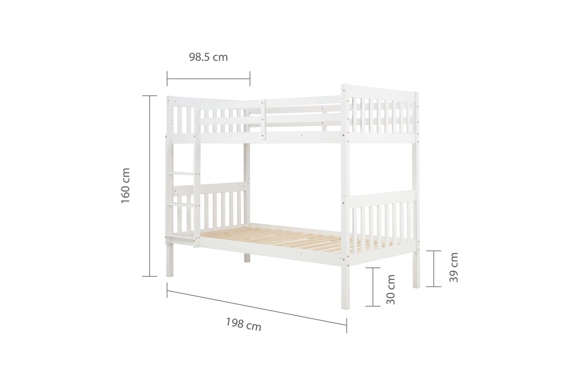 Designed with safety and practicality in mind, the Benji Bunk Bed features a slatted structure, high safety rails on the top bunk, and a secure ladder. The ladder can be placed on either side of the bed, allowing you to customize the layout to suit your space. This flexibility makes it ideal for different room configurations.