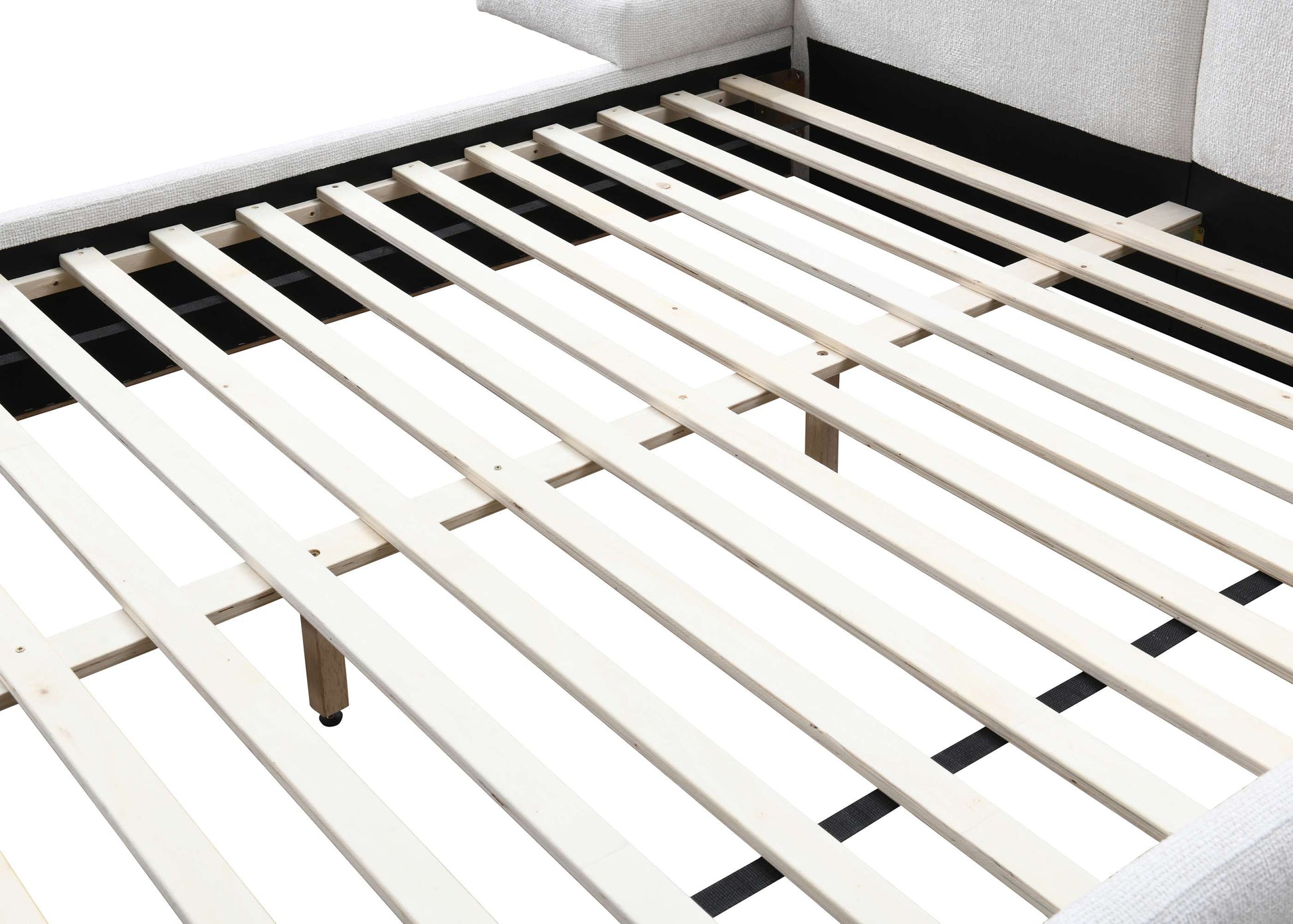 The Como Bed is a sophisticated design that blends refined elegance with modern practicality. Featuring a tall, panelled headboard for a sleek architectural look, the Como is upholstered throughout in soft fabric and finished with a faux wood-effect fabric trim. This clever detail captures the beauty of natural timber while retaining the tactile warmth and comfort of fabric, making it a truly unique feature.