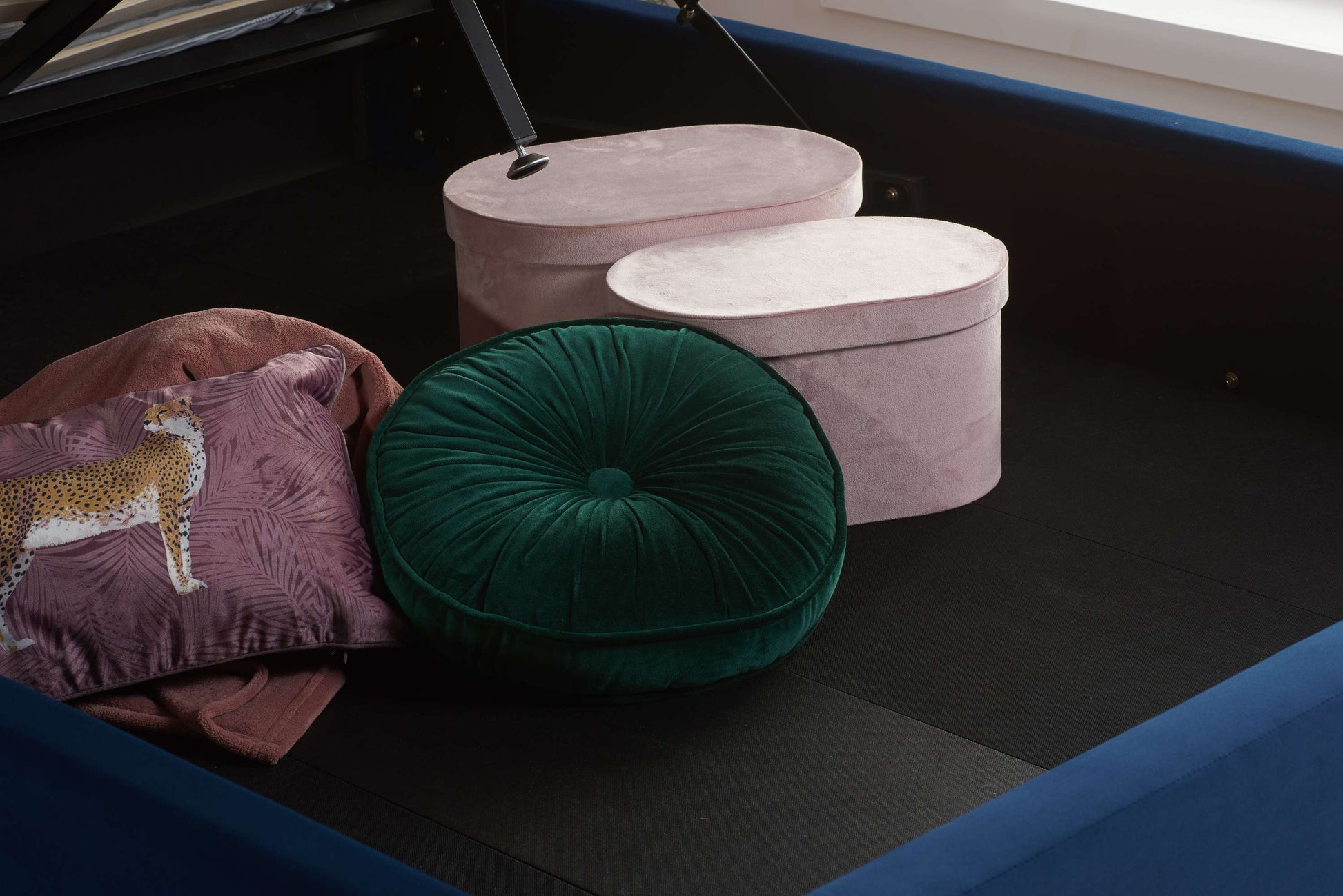 The ottoman base with gas lift arms gives the Lottie a gorgeous style with a practical edge. The gas piston strength on this frame is 600 N and can support mattresses up to the weight of 45 kg, perfect for storing clothes, shoes, bedding and more.