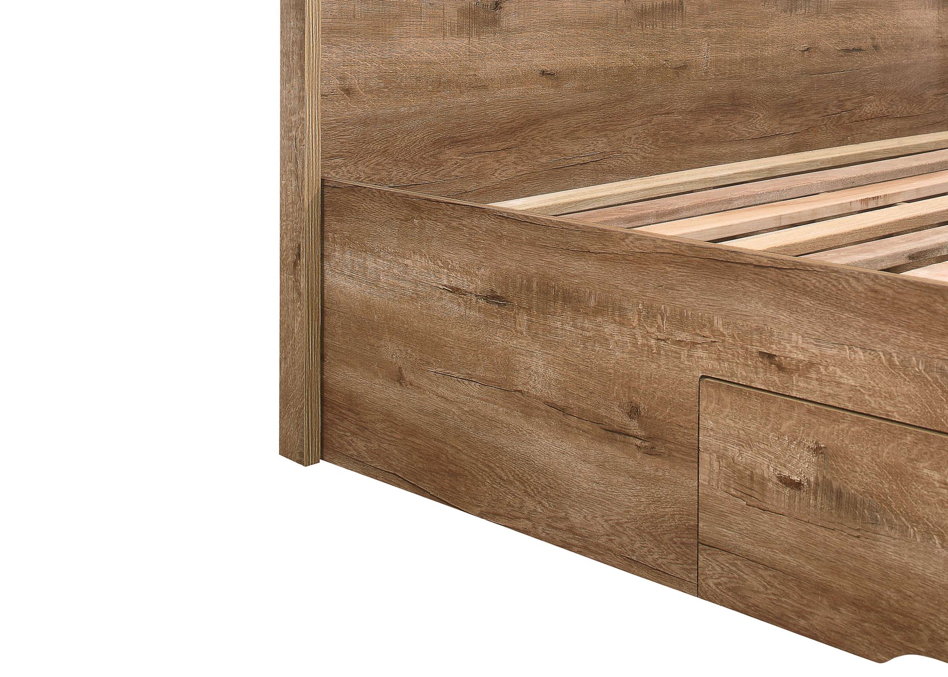 Customer Questions about Stockwell Rustic Oak Effect Wooden Bed: