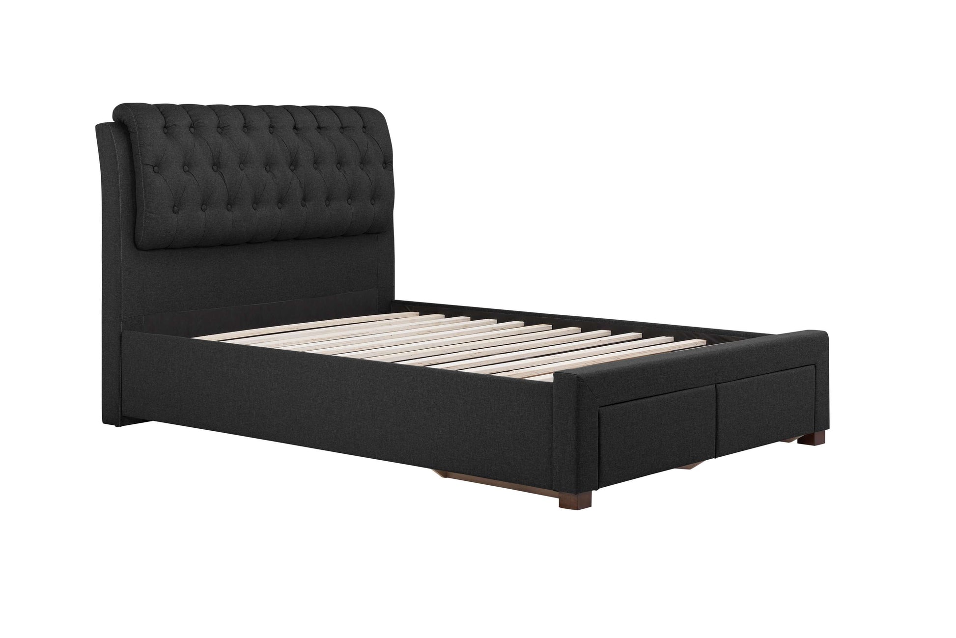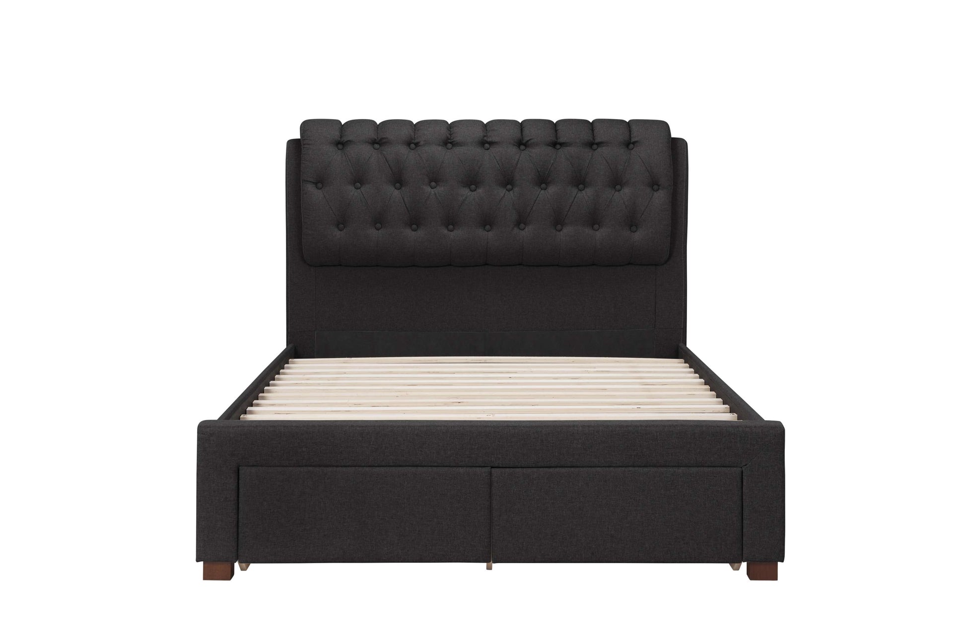 Customer Questions about Valentino Charcoal Fabric Bed With Storage Drawers: